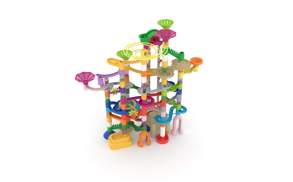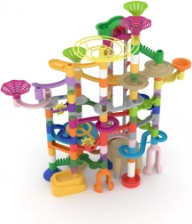 Tato velká kuličková dráha přináší pestrou paletu dílů pro stavění vysokých věží, dynamických sjezdů a zábavných tunelů. Díky snadno kombinovatelným segmentům děti trénují trpělivost, kreativitu a technické myšlení, zatímco sledují, jak se kuličky svižně řítí hotovou tratí.