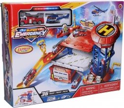 Postavte si vlastní hasičskou základnu a vyrazte do akce! Tato detailně zpracovaná stanice s garáží má 2 podlaží, funkční výtah a nájezdy pro rychlý výjezd. Díky vyklápěcím vratům je zásahové vozidlo okamžitě připraveno k akci, zatímco vrtulník startuje ze střechy.