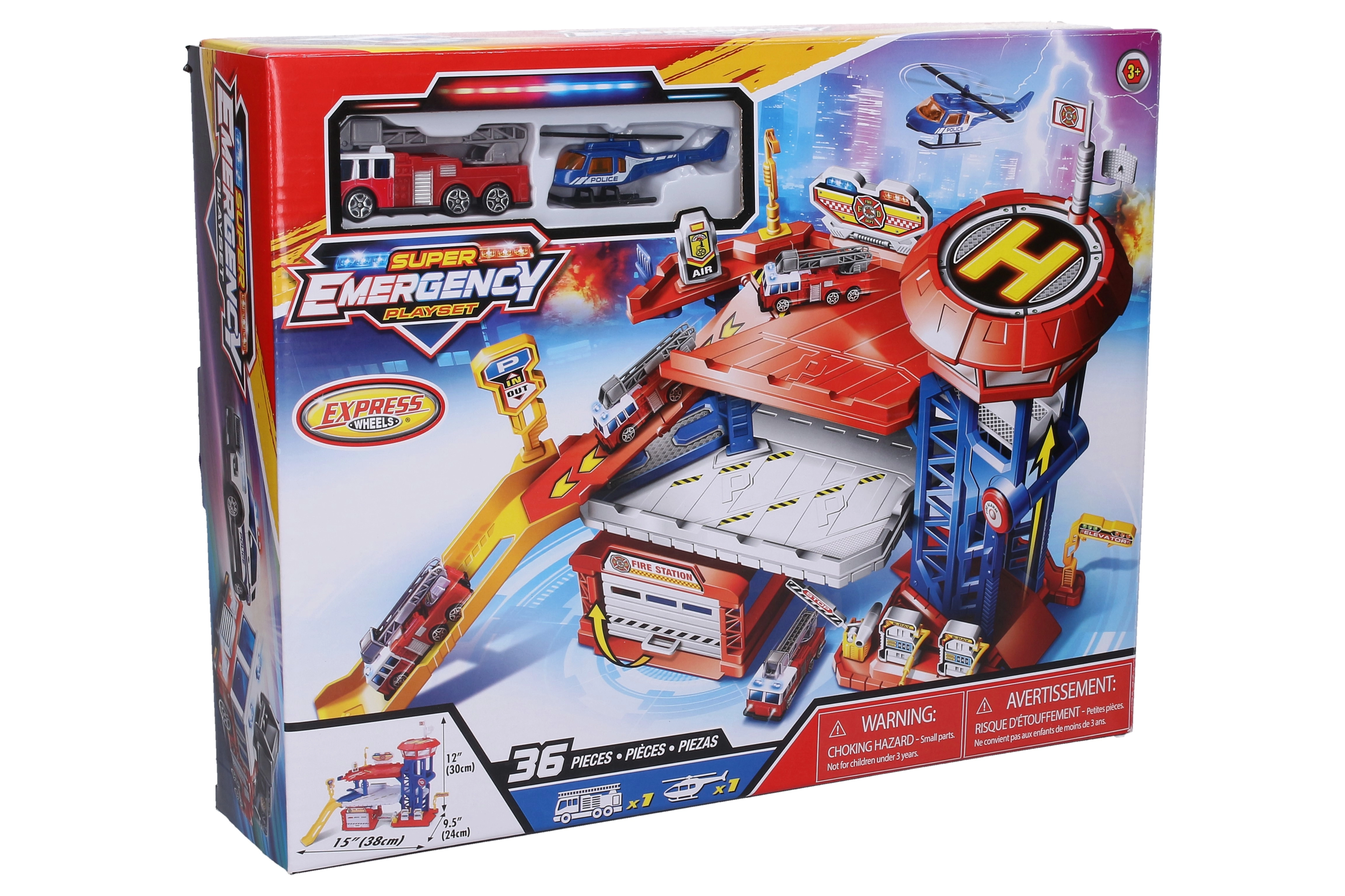 Parádní hasičská stanice pro malé záchranáře nabízí dvoupodlažní garáž o délce 38 cm se spoustou funkcí. Součástí je hasičské auto, vrtulník, funkční výtah, nájezdy a vyklápěcí vrata. Nechybí samolepky a obrázkový návod pro snadné sestavení.