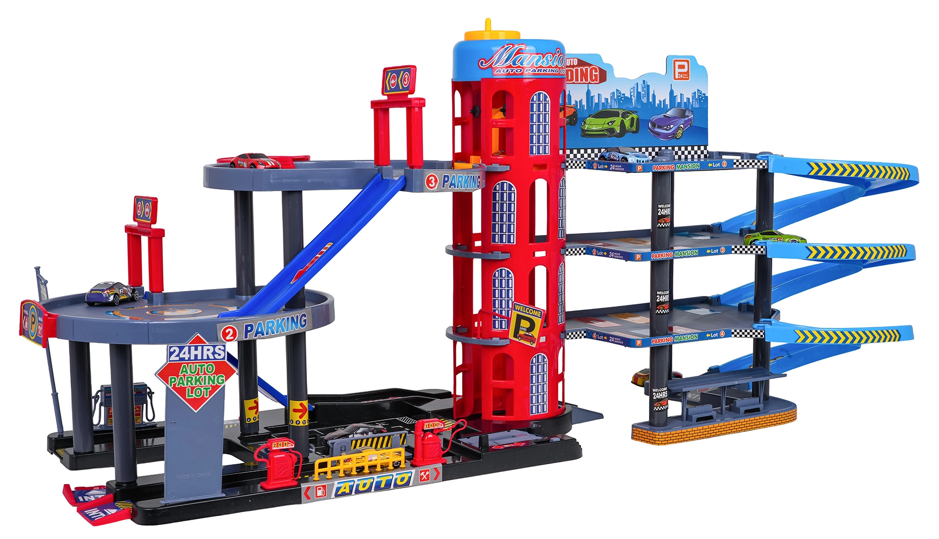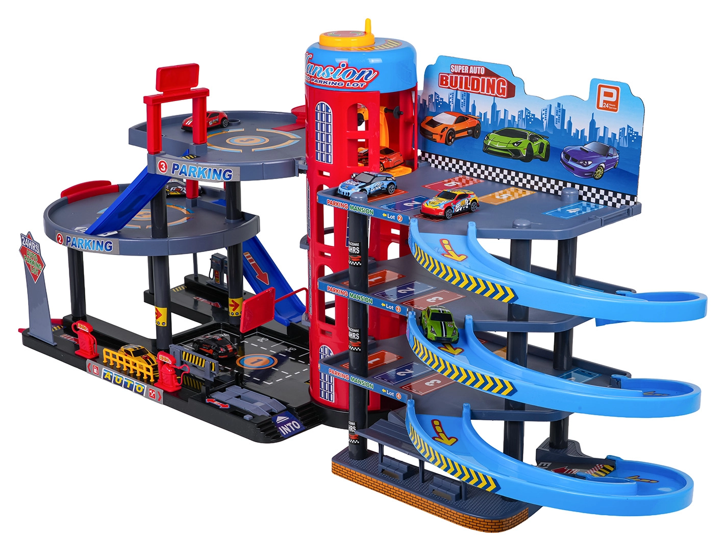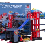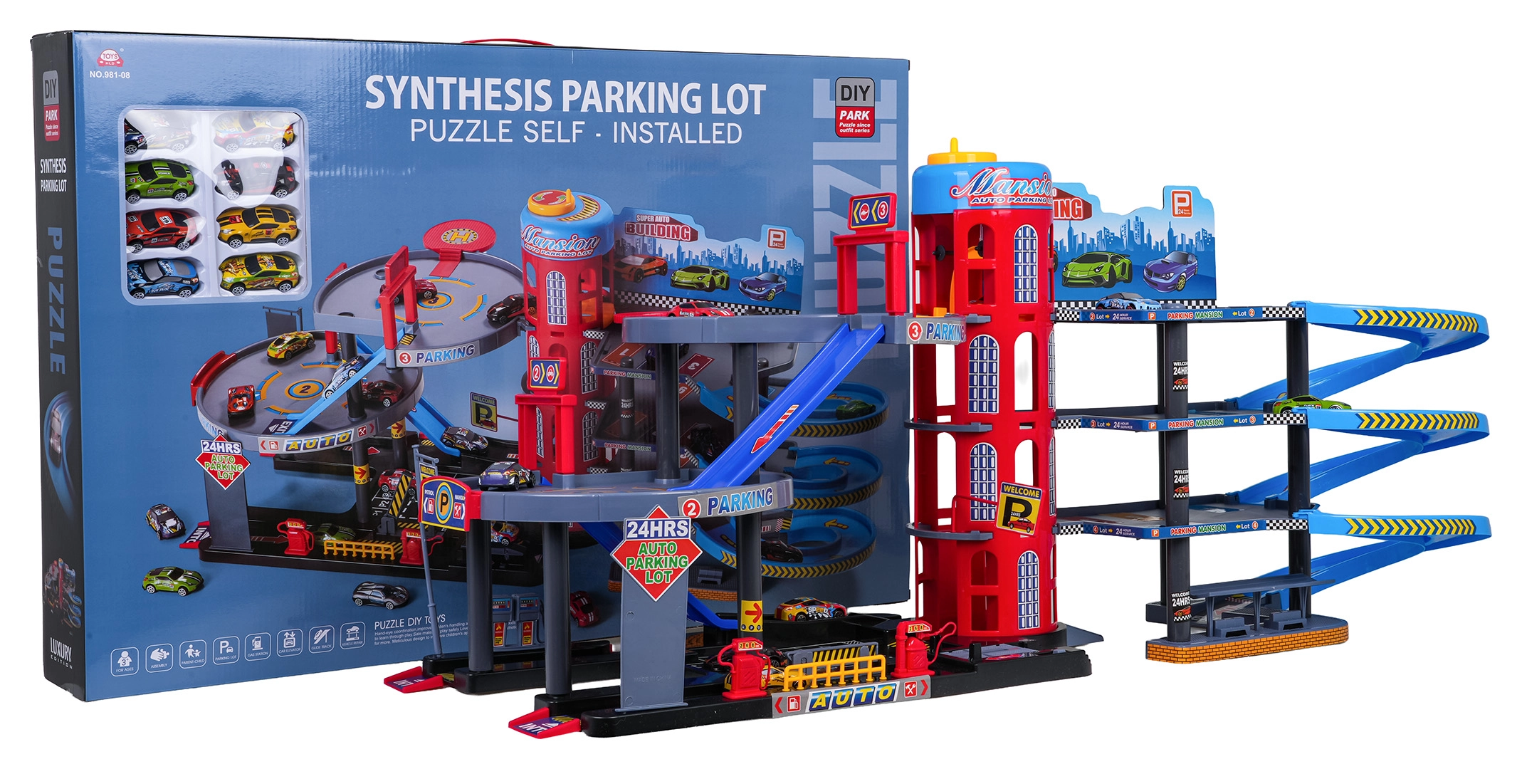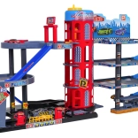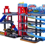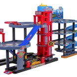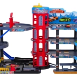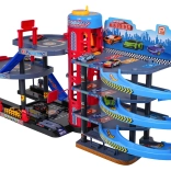 Velká víceúrovňová parkovací garáž s výtahem a závodními rampami potěší malé řidiče od 3 let. Součástí je 4patrové parkování, funkční výtah, spirálové sjezdy, čerpací stanice a heliport. V balení najdete 8 kovových autíček a barevné samolepky pro ještě větší zábavu.