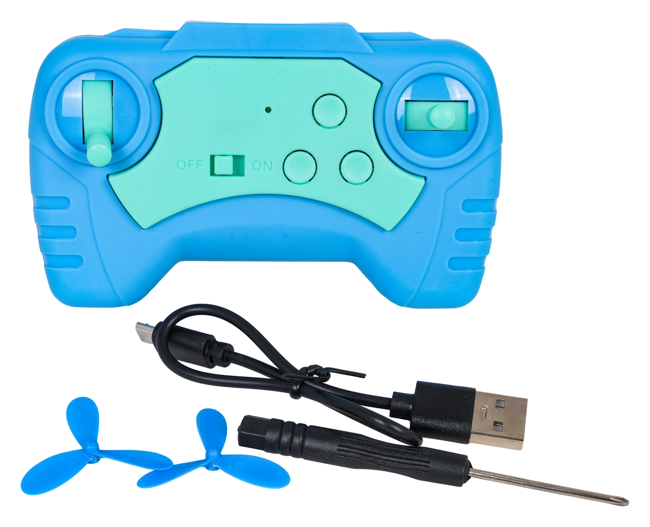 Letadlo, dálkový ovladač, USB nabíjecí kabel, šroubovák, 2× náhradní vrtule, návod