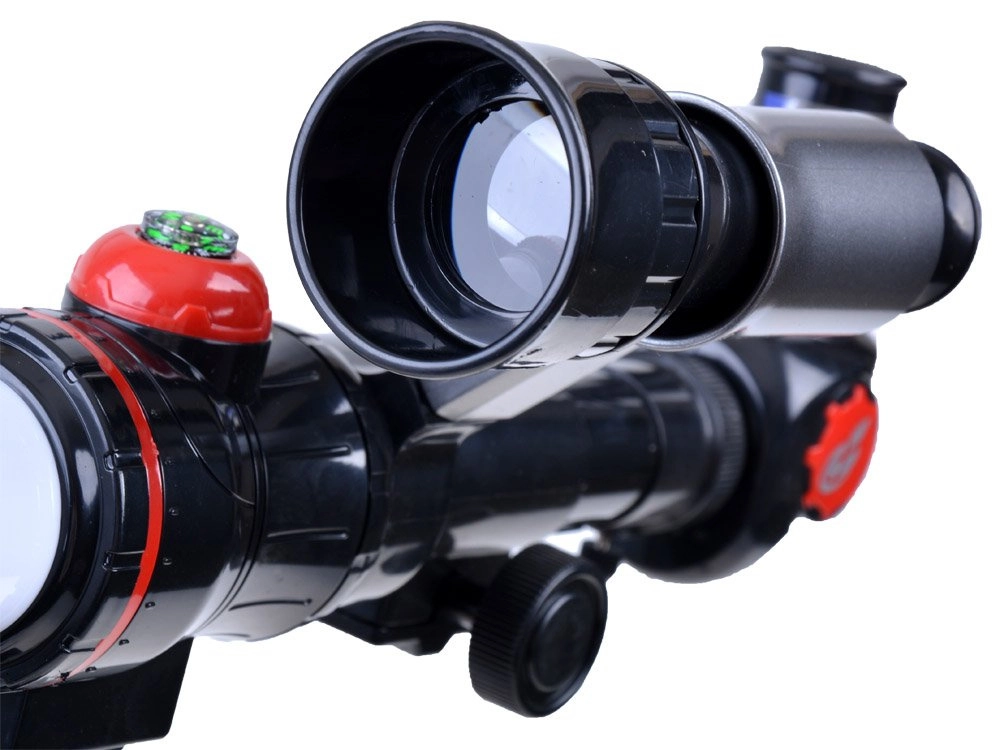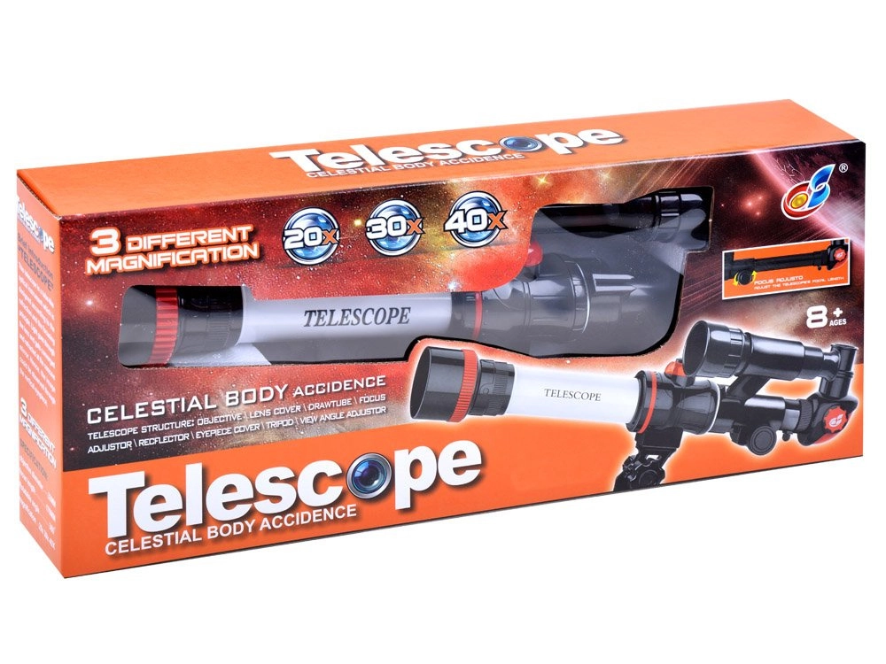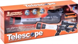 - teleskop, 3× okulár, diagonální hranol, mini kompas, stativ