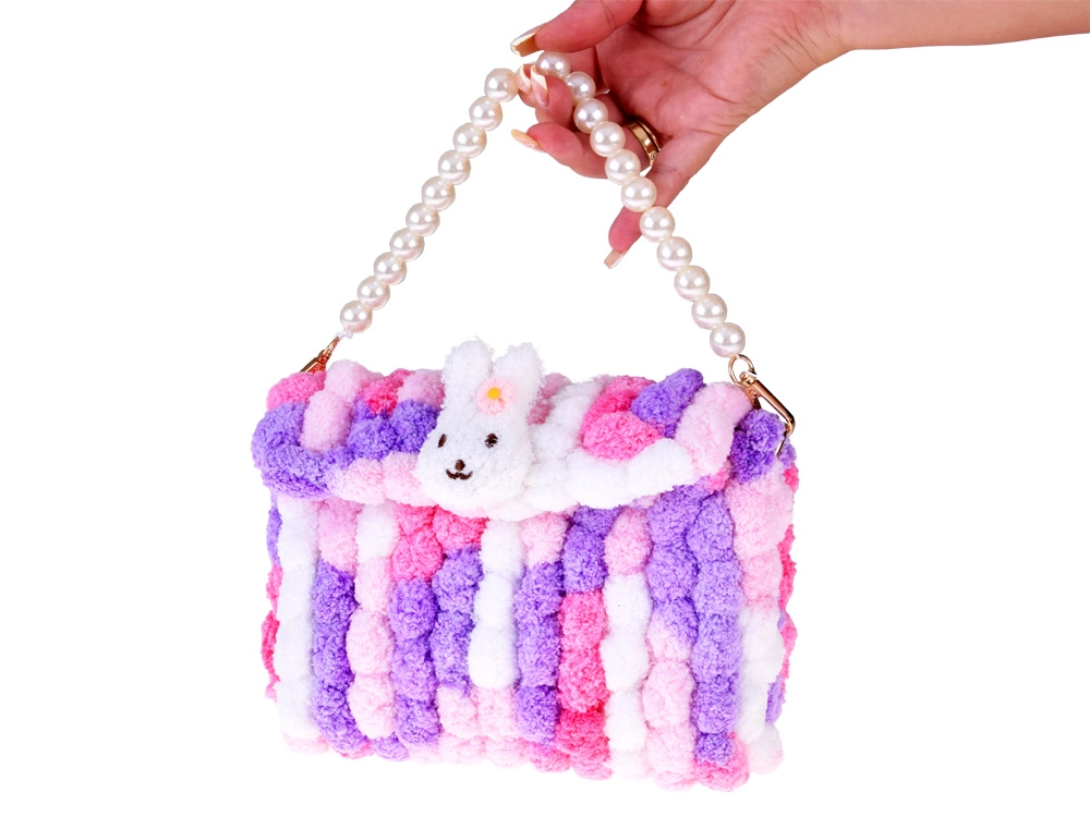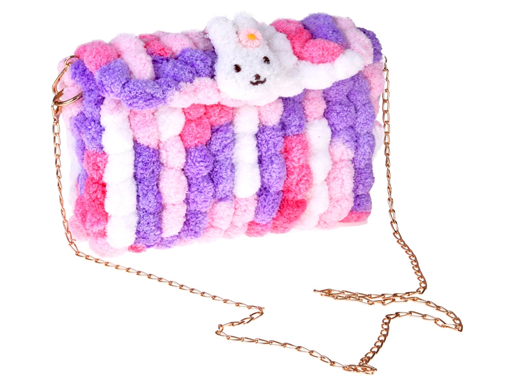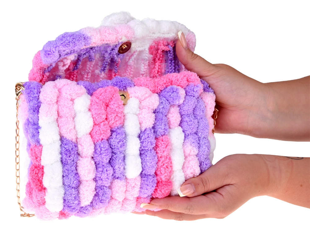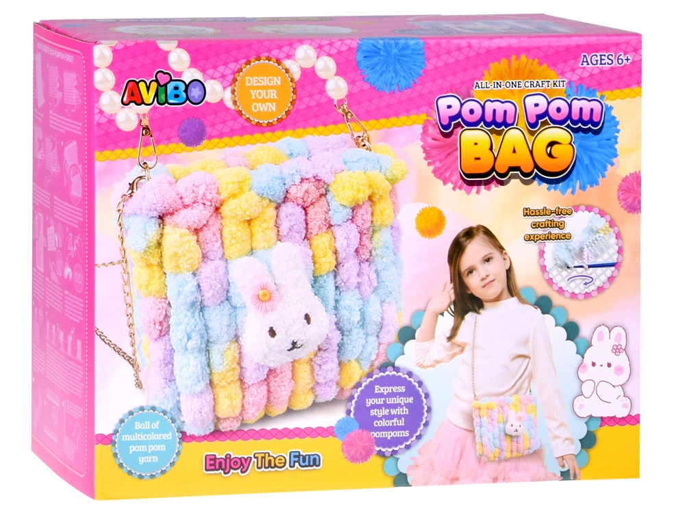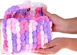 Sada DIY Pom Pom Bag promění čas tvoření v zábavný projekt s krásným výsledkem – měkkou, pestrobarevnou kabelkou s chlupatou texturou, která je příjemná na dotek. Hotovou kabelku můžete nosit přes rameno díky kovovému řetízku nebo ji použít jako roztomilý doplněk na výlety a do města.
