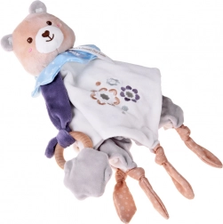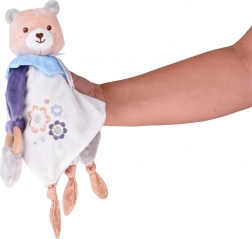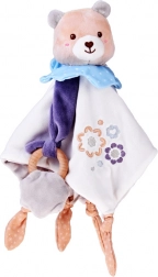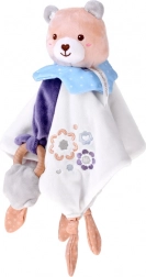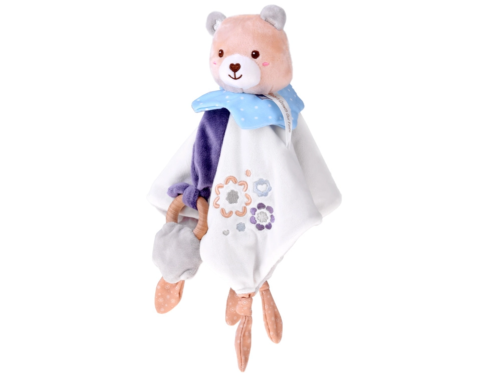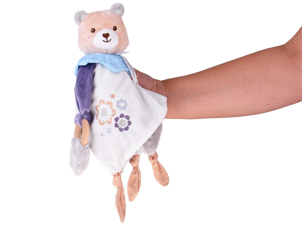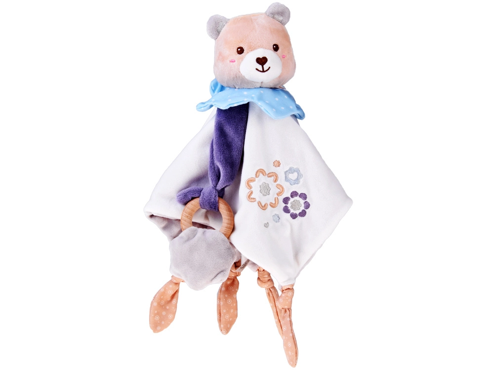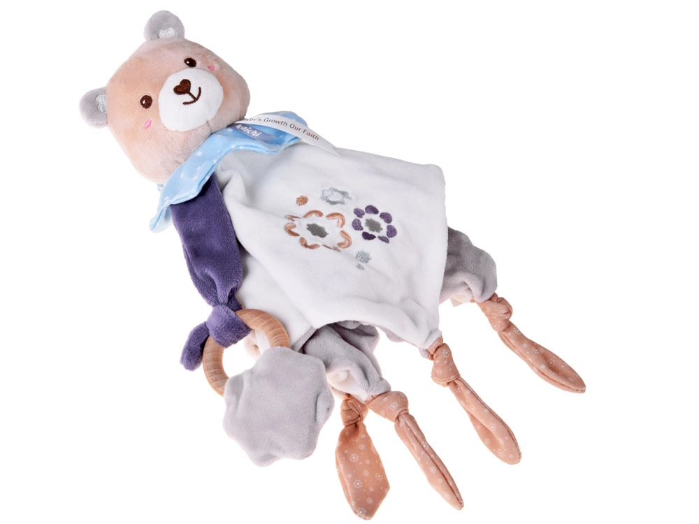 Roztomilý mazlíček pro miminka spojuje plyšového medvídka, měkkou uklidňující dečku a dřevěné kousátko v jednom. Nabízí různé textury, vyšívané detaily a uzlíky pro snadné uchopení, které podporují sensomotorický rozvoj a přinášejí pocit bezpečí od prvních dnů života.