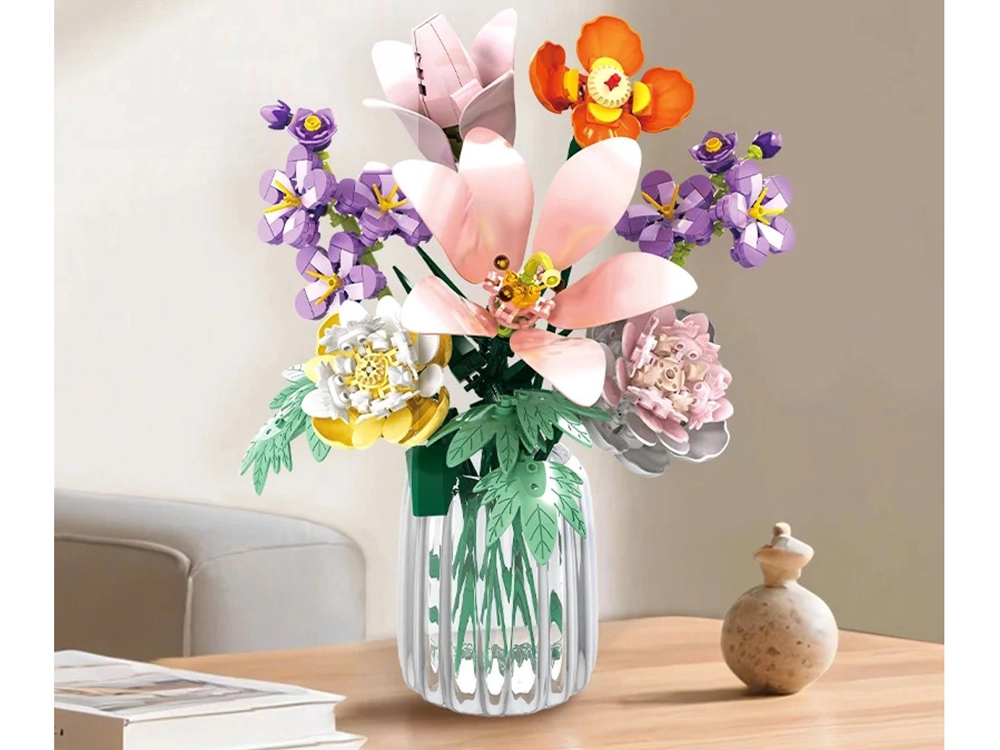 Vytvořte si vlastní barevnou kytici z kostek, která nikdy nezvadne. Tento dekorativní set s 563 dílky umožní postavit působivou kompozici polních květů do vázy, užít si kreativní relax a ozdobit domov stylovým doplňkem bez údržby.
