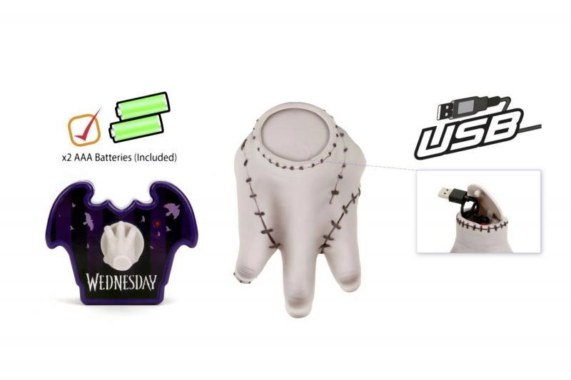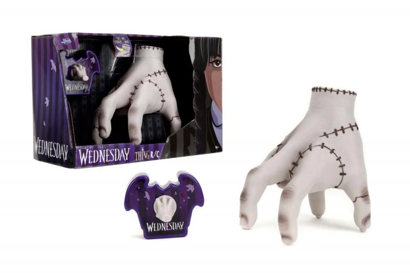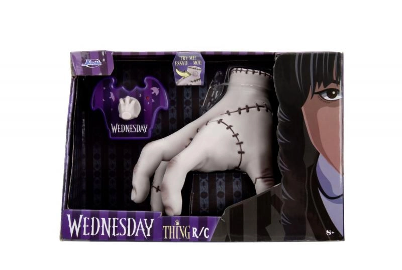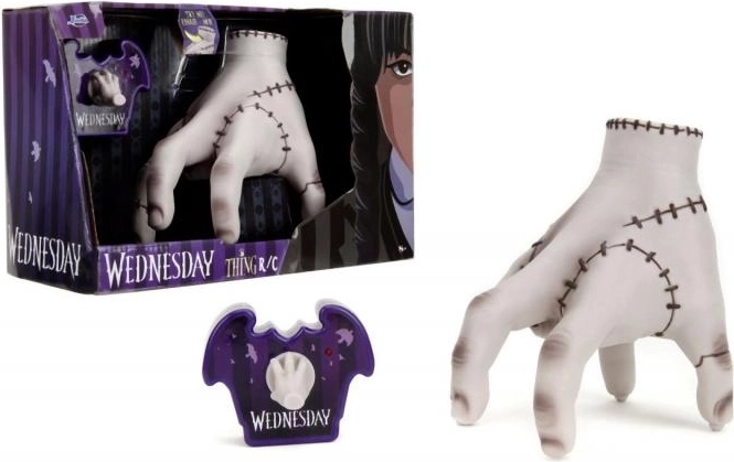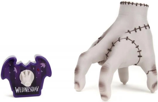 Objevte kultovní postavu Thing ze seriálu WEDNESDAY jako zábavnou dálkově ovládanou figurku o výšce 16 cm od značky Jada Toys. Součástí je stylový fialový ovladač ve tvaru netopýra s malou ručkou jako joystickem. Stačí vložit baterie, stisknout horní část hračky a ruka se začne pohybovat – perfektní dárek pro děti i dospělé fanoušky.