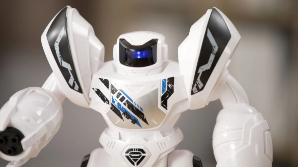Robot střílí náboje a doprovází akci efektním LED obličejem a zvukovými efekty pro ještě větší zábavu.