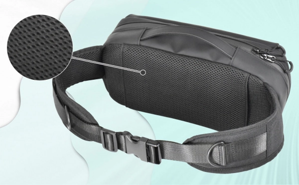 Streamlined cross-body design s voděodolným povrchem a zipem udržuje vaše nezbytnosti po ruce a v bezpečí i venku.