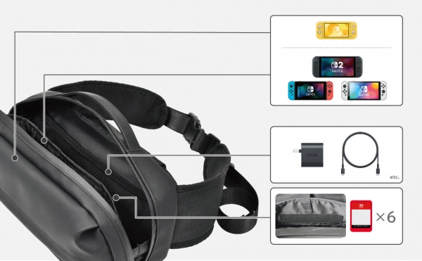 Hlavní komora chrání vaši konzoli před poškrábáním a drobnými nárazy, zatímco praktická vnější kapsa udrží příslušenství jako Joy-Con ovladače, karty, kabely nebo sluchátka vždy po ruce. Nastavitelný ramenní popruh a horní madlo umožňují dvojí styl nošení – přes rameno i v ruce.