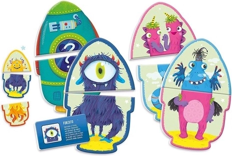 Monster Memo je zábavná a vzdělávací hra, která přináší dětem první kroky do světa asociací a kreativity. Díky 24 velkým kartám s mimozemšťany mohou děti hledat dvojice, vytvářet vlastní kombinace a vymýšlet příběhy. Velký plakát galaxie slouží jako hrací podložka, na kterou mohou mimozemšťany umisťovat na různé planety – hra tak získává nový rozměr a děti se snadněji ponoří do fantazijního světa.