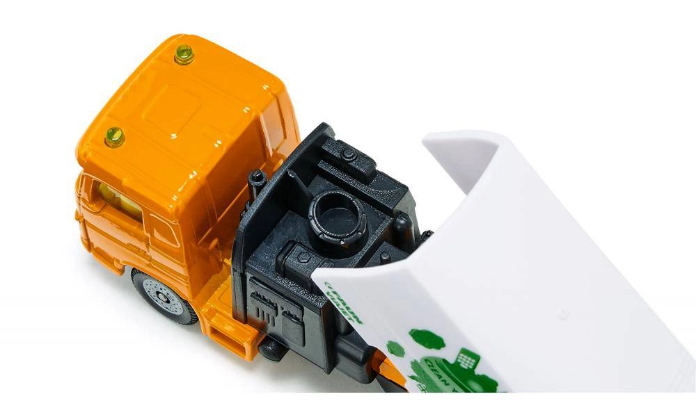 Jasně oranžová kabina, potisk „Clean Your City“ a realistické prvky šasi podporují představivost a sběratelskou hodnotu.