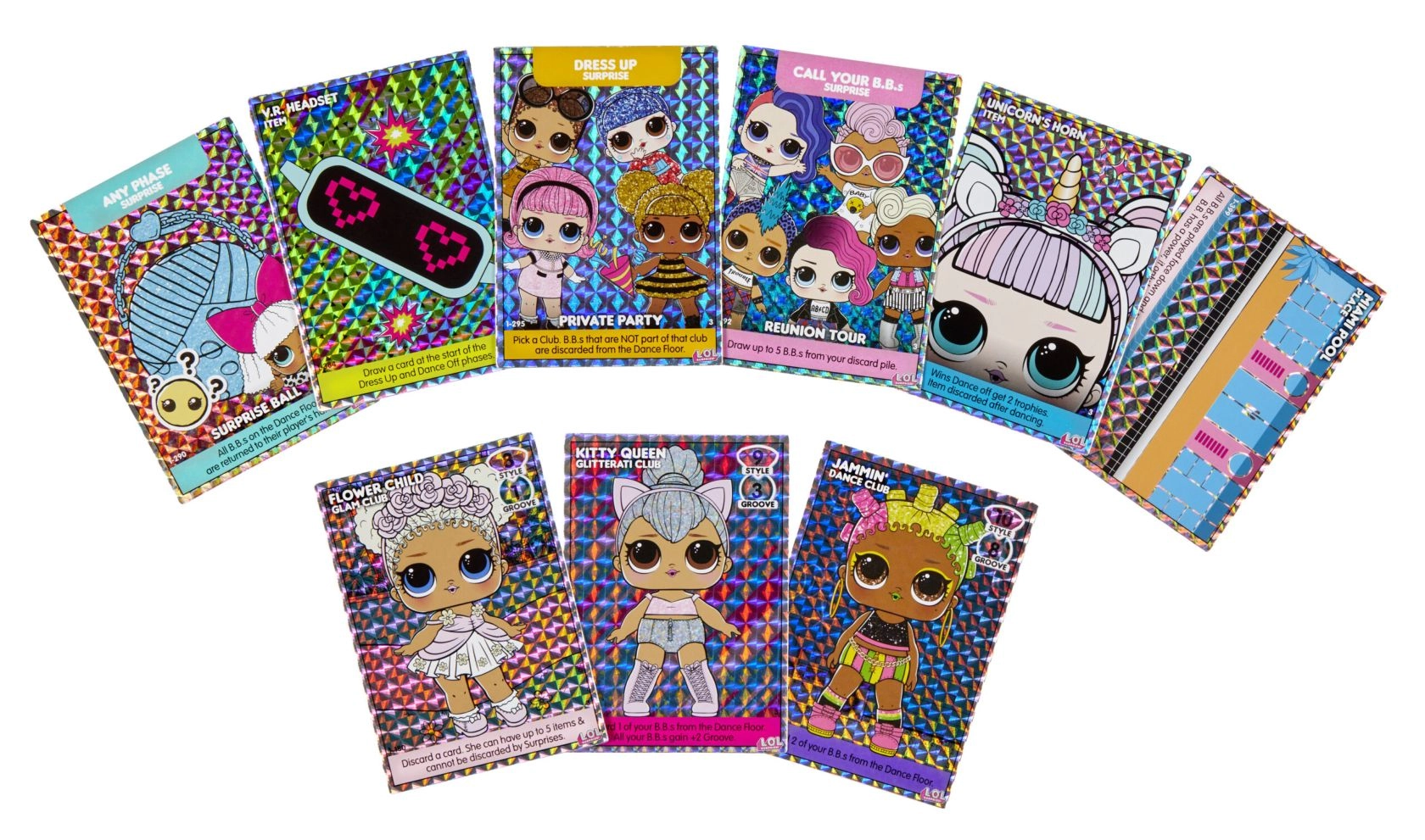 Každé balení obsahuje 8 karet a 3 trofeje pro hraní karetní hry L.O.L. Surprise Dance Off – sbírejte, vyměňujte a porážejte soupeře.