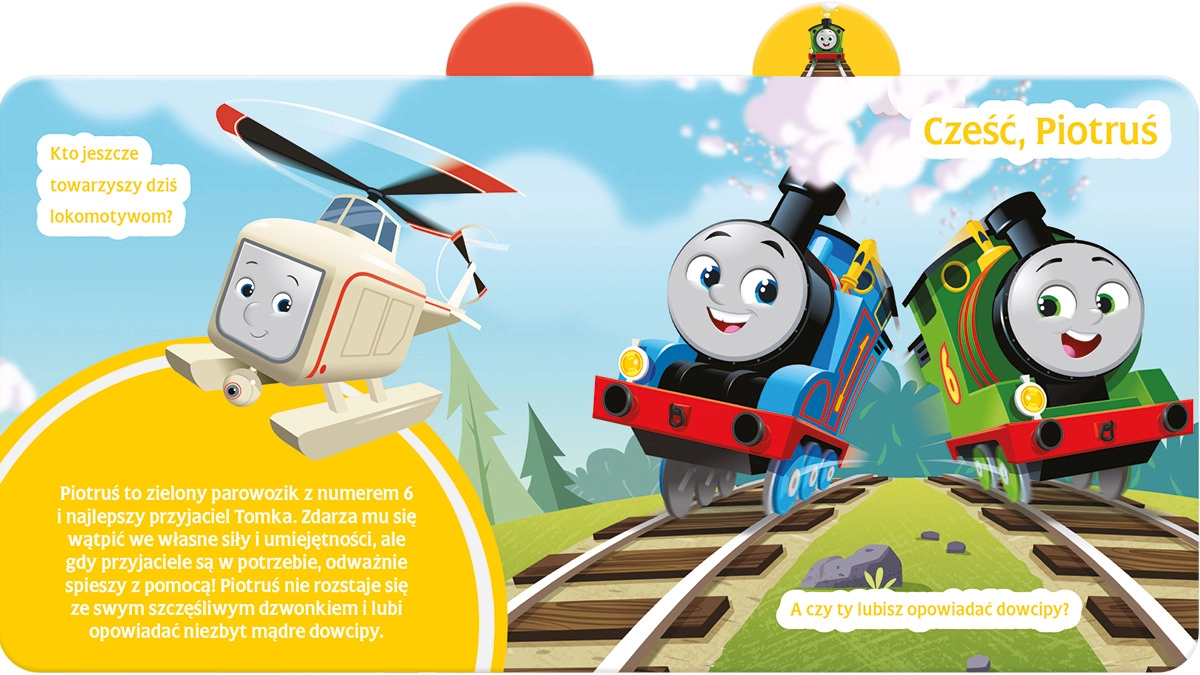 Tato atraktivní kartonová kniha potěší všechny děti, které milují svět Tomka a jeho přátel. Najdou v ní Piotrusia, Kamciu, Nii, Diesela, Bruna, Gabrysia i Sandru – každý hrdina má svůj portrét umístěný na vystupující záložce, takže se děti snadno vrátí k oblíbené stránce. Jednoduché a srozumitelné texty v polštině podněcují zvídavost a rozvíjejí slovní zásobu.