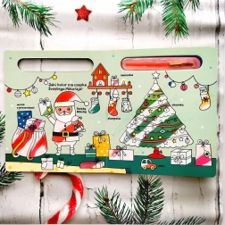 Kniha bere malé čtenáře do světa vánočních elfů, kteří připravují dárky pro svatého Mikuláše a nakládají je na saně tažené soby. Při malování děti objevují, jak se dárky dostanou pod stromeček. Každá stránka přináší drobné interaktivní úkoly (např. „Spočítej perníčky“, „Ukaž soby“), které podporují pozornost, jemnou motoriku a základní počítání.