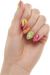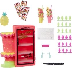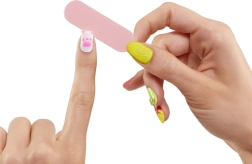 Vytvořte si dokonalé nehty: vyberte si tipy, upravte tvar pilníčkem, nalepte, naneste lak a zakončete zdobením glitrem nebo samolepkami. Vše uklidíte do stylového úložného prostoru – mini ledničky a pultu kavárny.