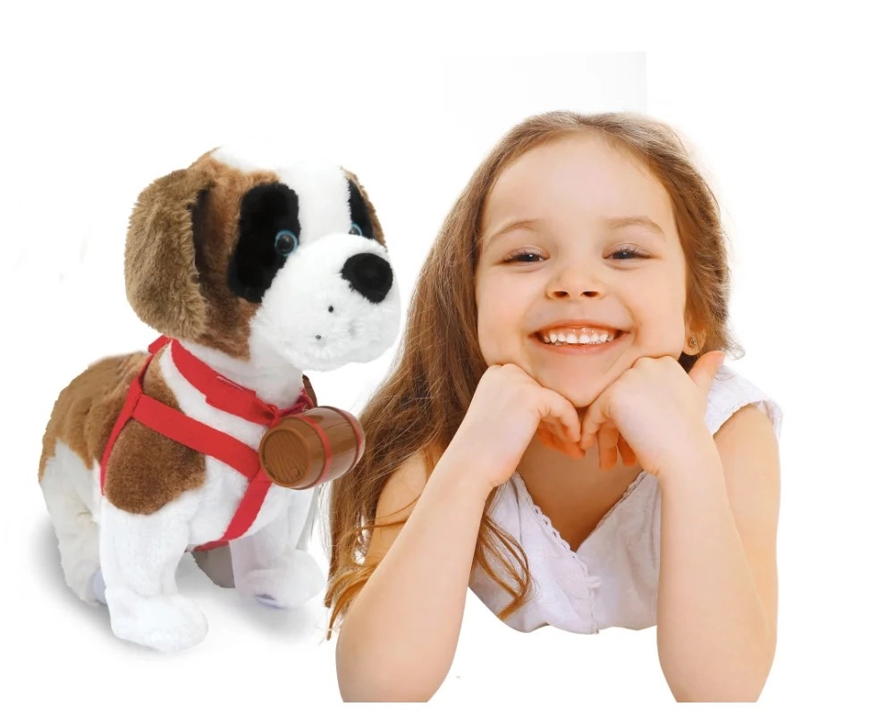 Interaktivní bernardýn Samby – chodící plyšový pejsek na vodítku