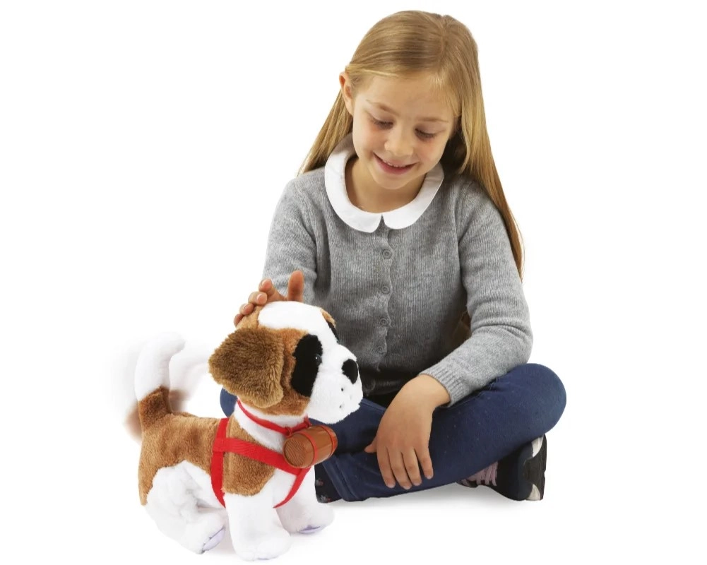 Hebká srst, červený postroj a obojek s typickým soudkem dodají hraní realistický záchranářský nádech a spoustu fantazie.
