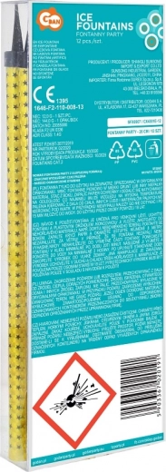 Stačí fontánu umístit svisle do dortu, zapálit papírový uzávěr a ustoupit do bezpečné vzdálenosti. Balení 12 kusů je skvělé pro větší oslavy nebo více příležitostí.