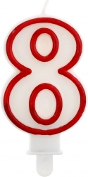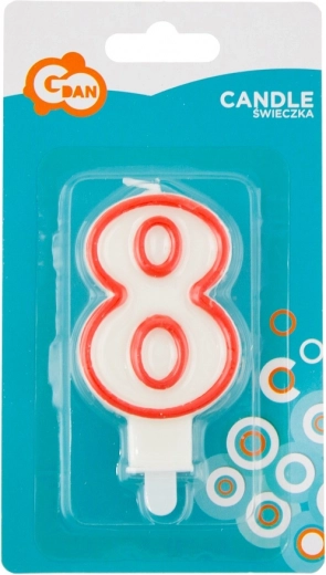 Tato bílá svíčka s výrazným červeným obrysem je ideální ozdobou pro narozeninové dorty a další slavnostní příležitosti. Zvýrazní číslo věku a dodá celému aranžmá elegantní, čistý vzhled.