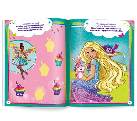 Vstupte do pohádkového světa BARBIE Dreamtopia, kde každá stránka přináší nové dobrodružství. Děti si mohou vytvářet vlastní příběhy, zdobit scény a rozvíjet představivost s pomocí dvou archů samolepek s třpytivým efektem. Úkoly jsou navrženy tak, aby odpovídaly schopnostem dětí ve věku 4–7 let – zábavné, přehledné a motivující.