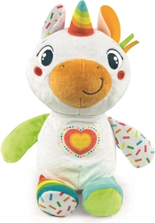Interaktivní plyšový jednorožec potěší každé miminko svítícím bříškem, příjemnými melodiemi a zvuky, které podněcují vizuální i sluchové vnímání. Měkké provedení z různých materiálů a šustící detaily lákají ke zkoumání a podporují rozvoj hmatových dovedností.
