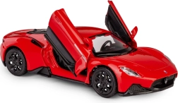 Užijte si autentický zážitek s modelovým autem MASERATI MC20 v měřítku 1:37. Kovová karoserie s plastovými detaily věrně kopíruje dynamické linie originálu a otevírací dveře odhalují pečlivě zpracovaný interiér. Díky pull-back pohonu stačí model natáhnout dozadu a vůz se sám rozjede vpřed.
