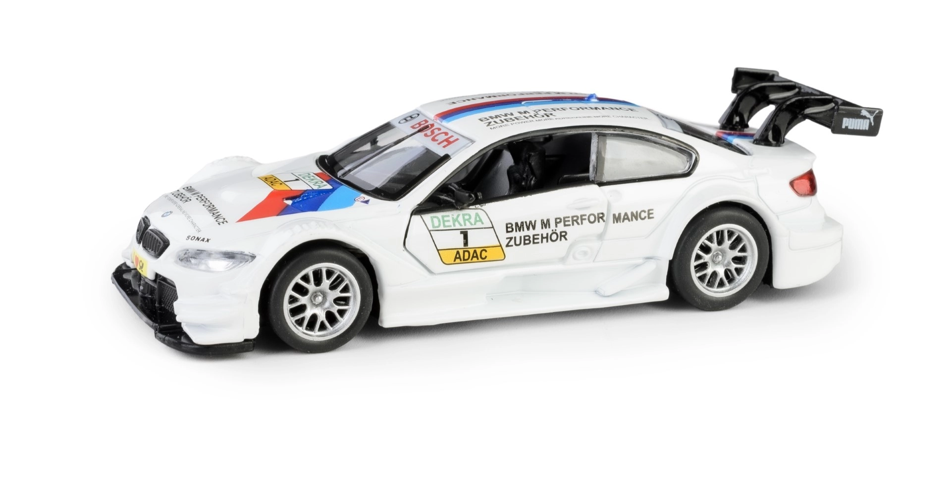 Objevte precizně zpracovaný kovový model BMW M3 DTM v měřítku 1:42 s otevíracími bočními dveřmi, pull-back pohonem a gumovými pneumatikami pro plynulou jízdu. Skvělý pro děti od 3 let i sběratele – realistické detaily a závodní vzhled potěší každého fanouška motorsportu.