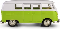 Tento precizní model legendárního mikrobusu z 50. let v atraktivním zeleno-bílém provedení spojuje sběratelskou kvalitu s hravými funkcemi. Kovové tělo s plastovými detaily poskytuje odolnost i působivý realistický vzhled, který vynikne v každé vitríně.