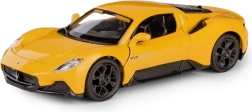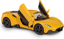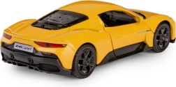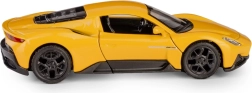 Model je vybaven zpětným natahovacím pohonem (pull-back), takže stačí natáhnout, pustit a auto svižně vyrazí vpřed. Žluté barevné provedení, volně otočná kola a robustní materiály zaručují dlouhou životnost při hraní i atraktivní vzhled ve vitríně.
