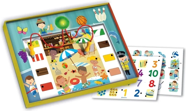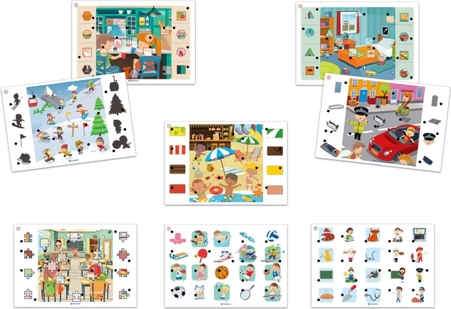 Součástí balení je 6 oboustranných herních desek s 12 úkoly, elektronický modul se dvěma konektory a praktický stojánek na desky. Hra je navržena pro samostatnou i společnou aktivitu s rodiči a díky bohaté ilustraci udrží pozornost dětí po dlouhou dobu.