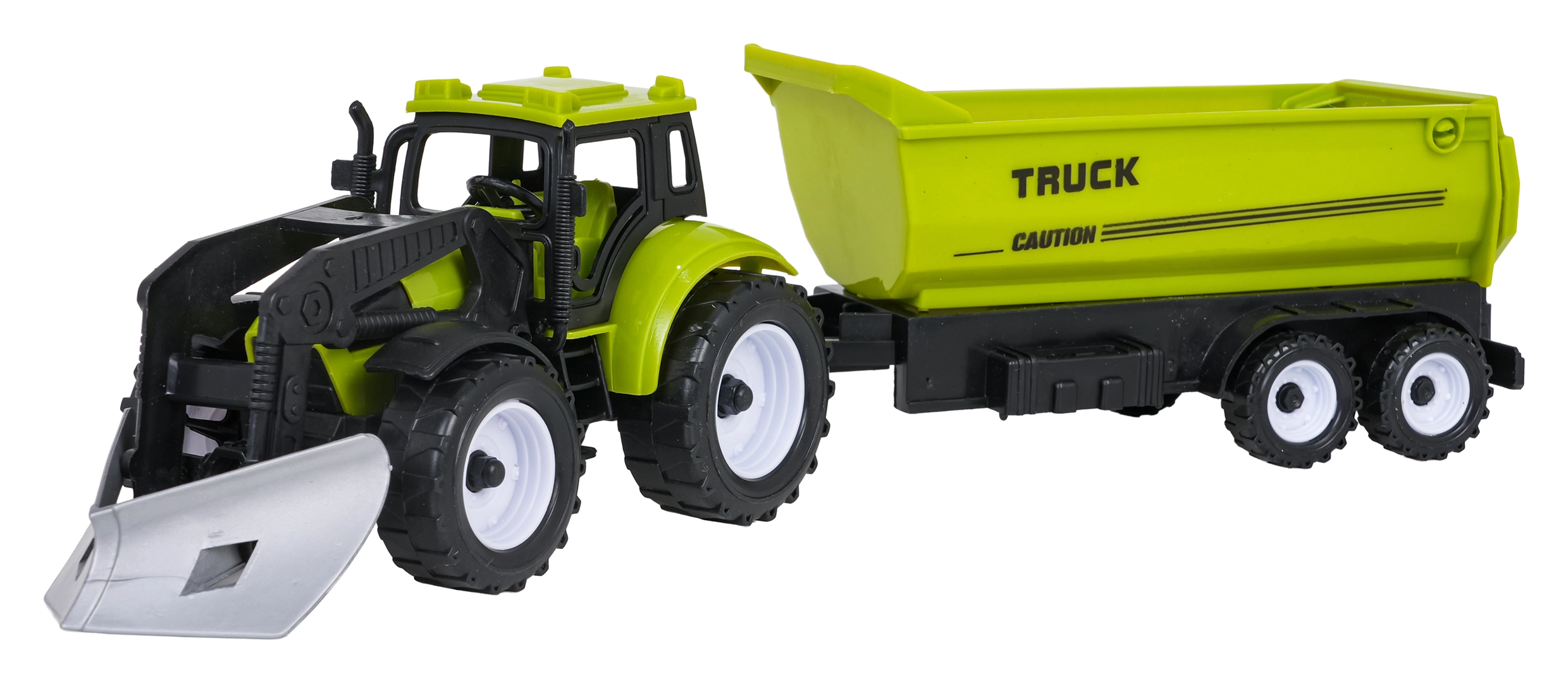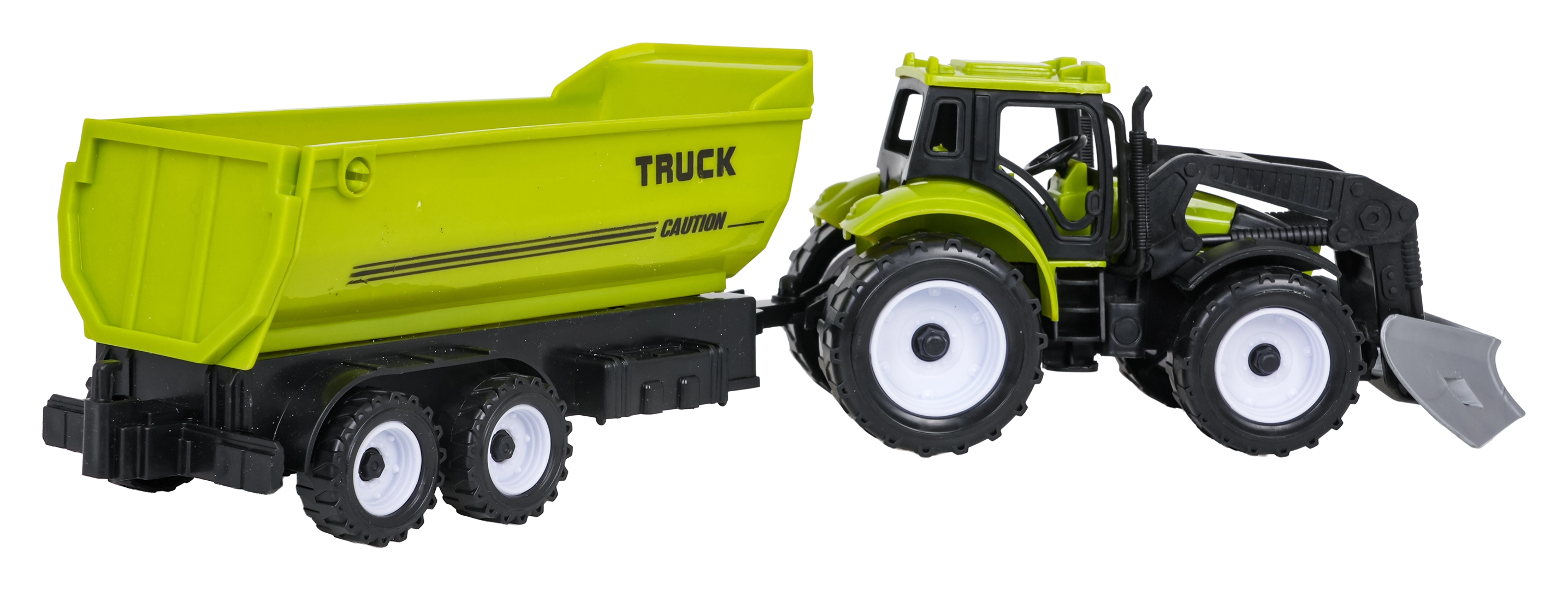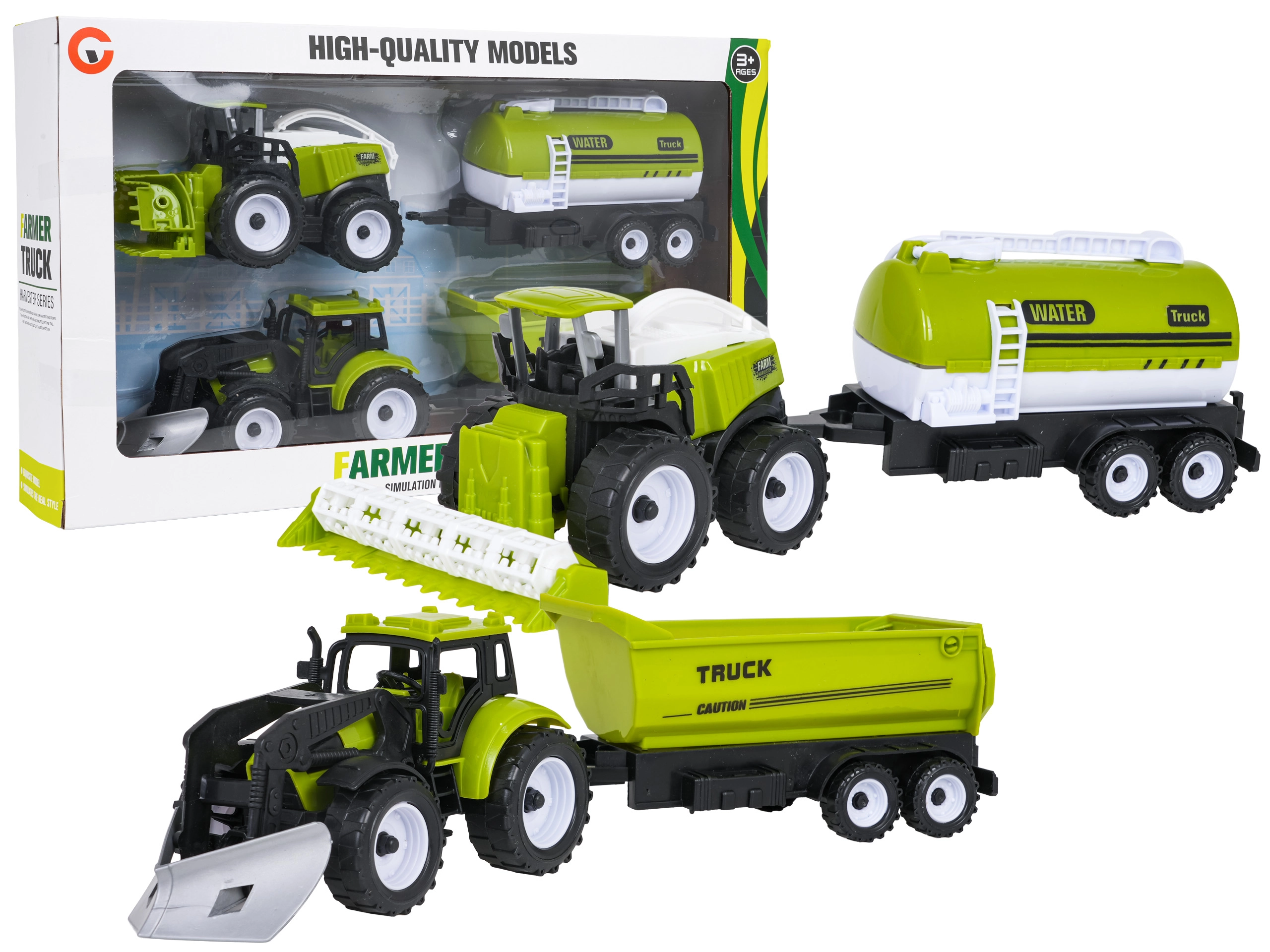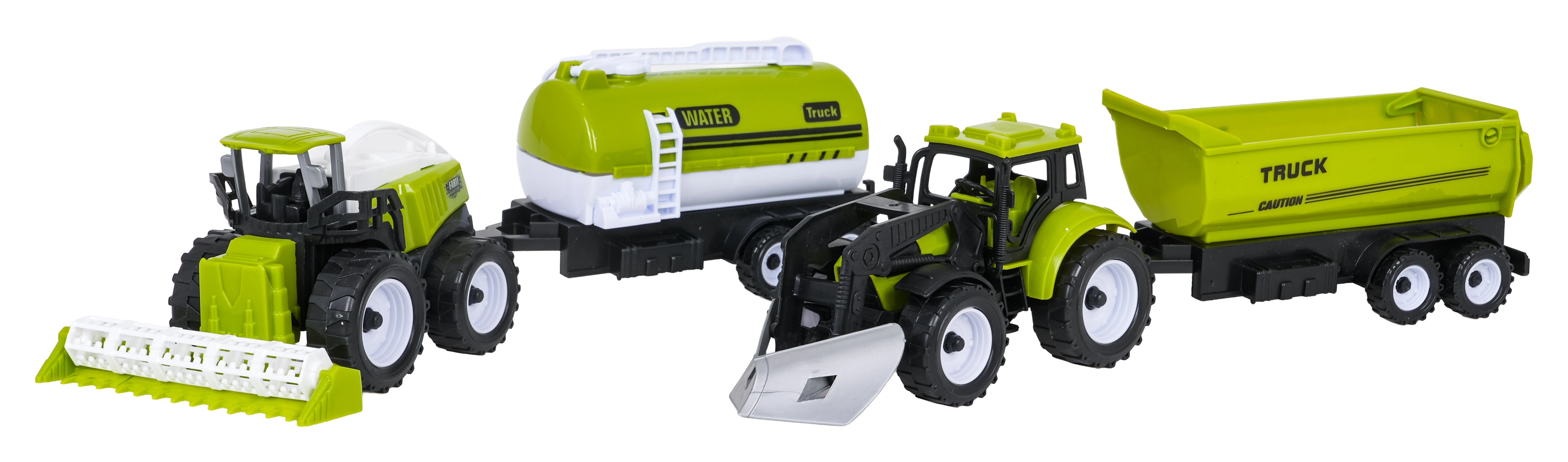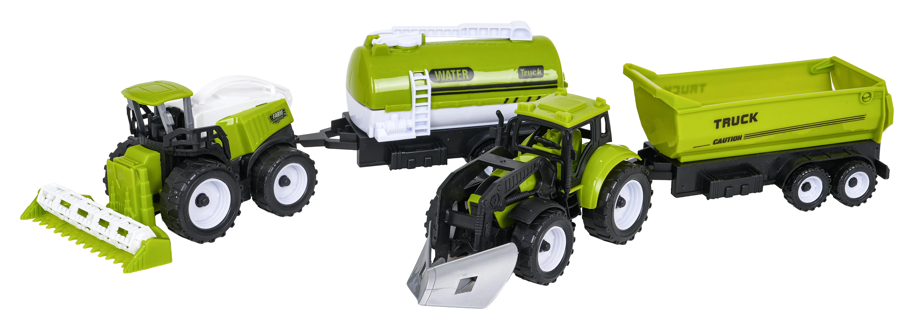 Objevte zábavu na farmě s touto realistickou sadou pro malé farmáře. Set obsahuje traktor s pluhem, kombajn, přívěs a cisternu na vodu. Hračky jsou vyrobeny z odolného plastu, mají pohyblivé části a možnost připojit přívěsy k traktoru i ke kombajnu – ideální pro tvořivou a bezpečnou hru od 3 let.