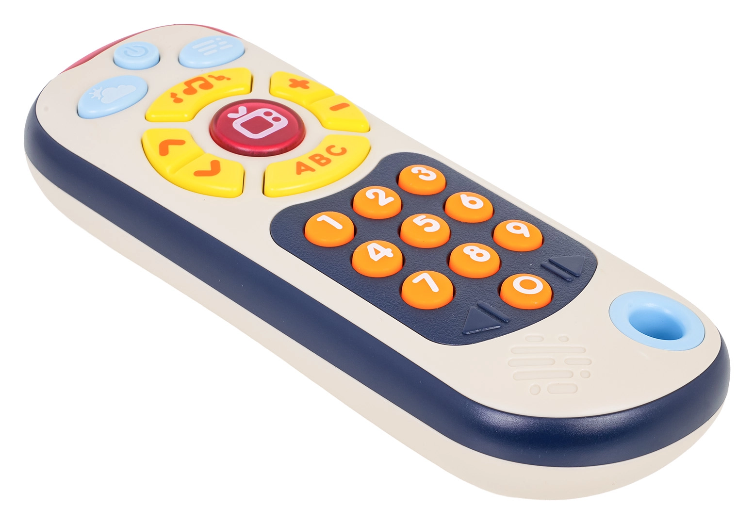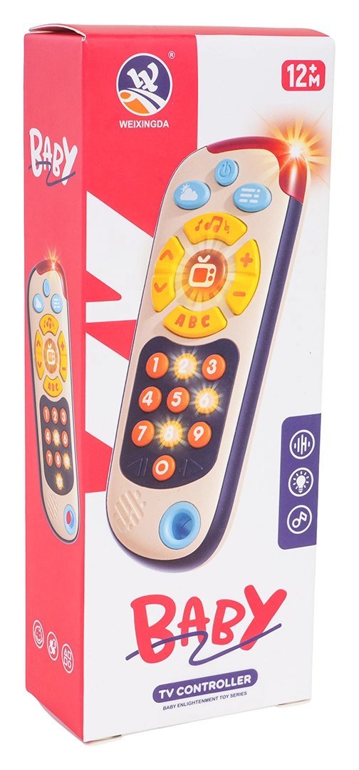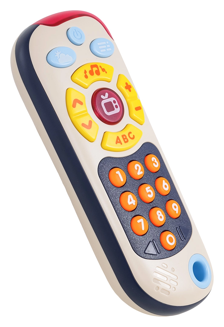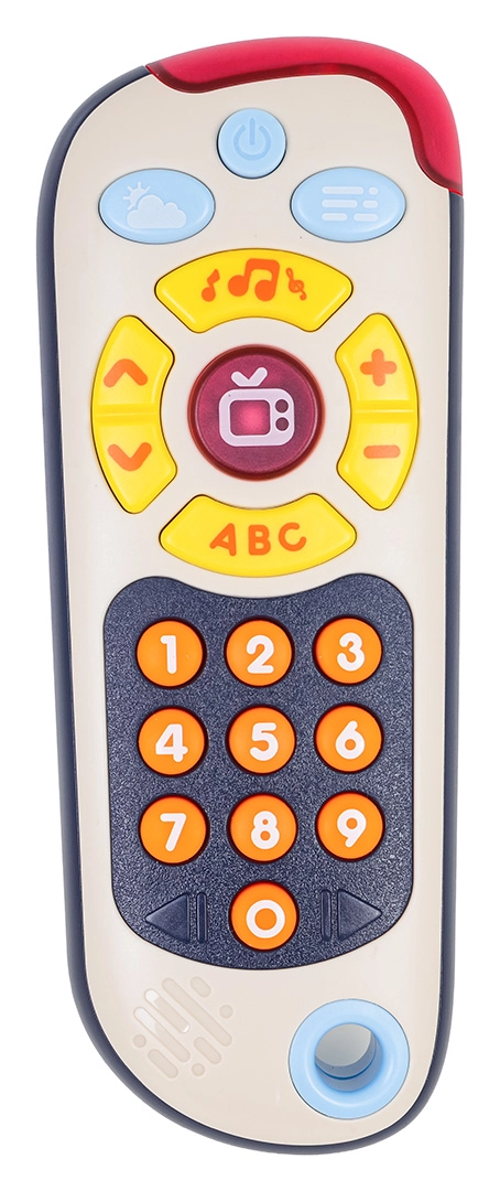 Tento barevný dětský ovladač napodobuje skutečné dálkové ovládání a motivuje děti k objevování. Nabízí tři režimy: čísla, „televizní“ obsah a mini hru „whack-a-mole“ s podsvícenými tlačítky. Velká, měkká tlačítka a příjemné světelné indikace podporují koordinaci oko–ruka a rozvoj slovní zásoby.