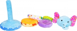 - Obsah balení: měkká základna s trnem, 4 plyšové kroužky, odnímatelná hlava slona s pískátkem