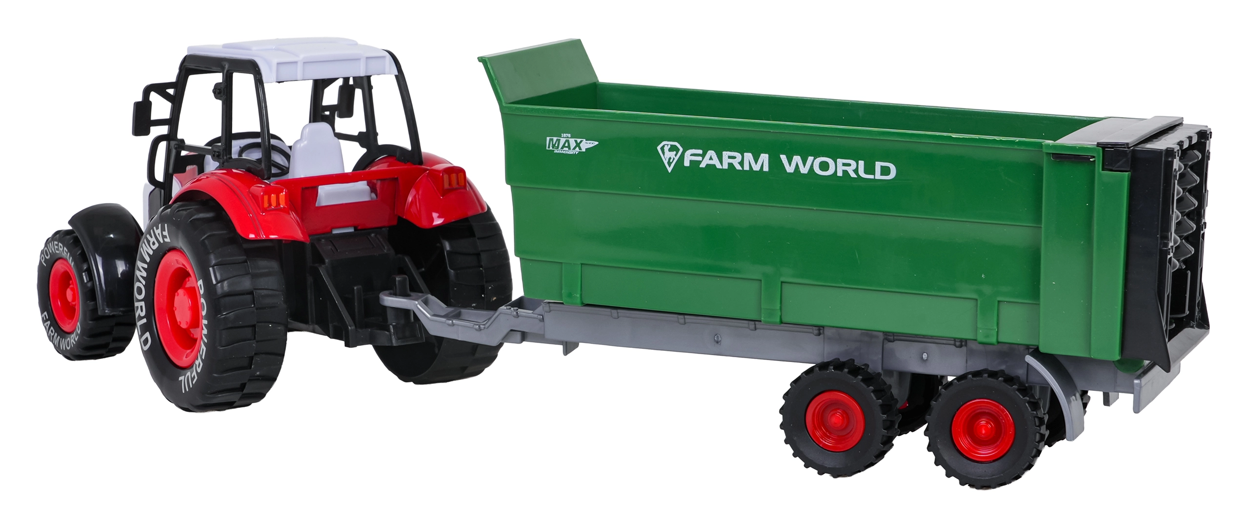 Přívěs lze snadno odpojit a používat samostatně. Vysoké bočnice a zadní čelo podporují nakládání a vykládání drobných předmětů, takže děti si mohou reálně simulovat farmářské práce. Kola s výrazným vzorkem zajišťují plynulý pohyb po různých površích.