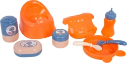- panenka, cestovní postýlka, kočárek, jídelní židlička, nosítko, nočník, talířek, lžička, vidlička, láhev, dóza na krém, dóza na pudr, mýdlenka, bryndáček