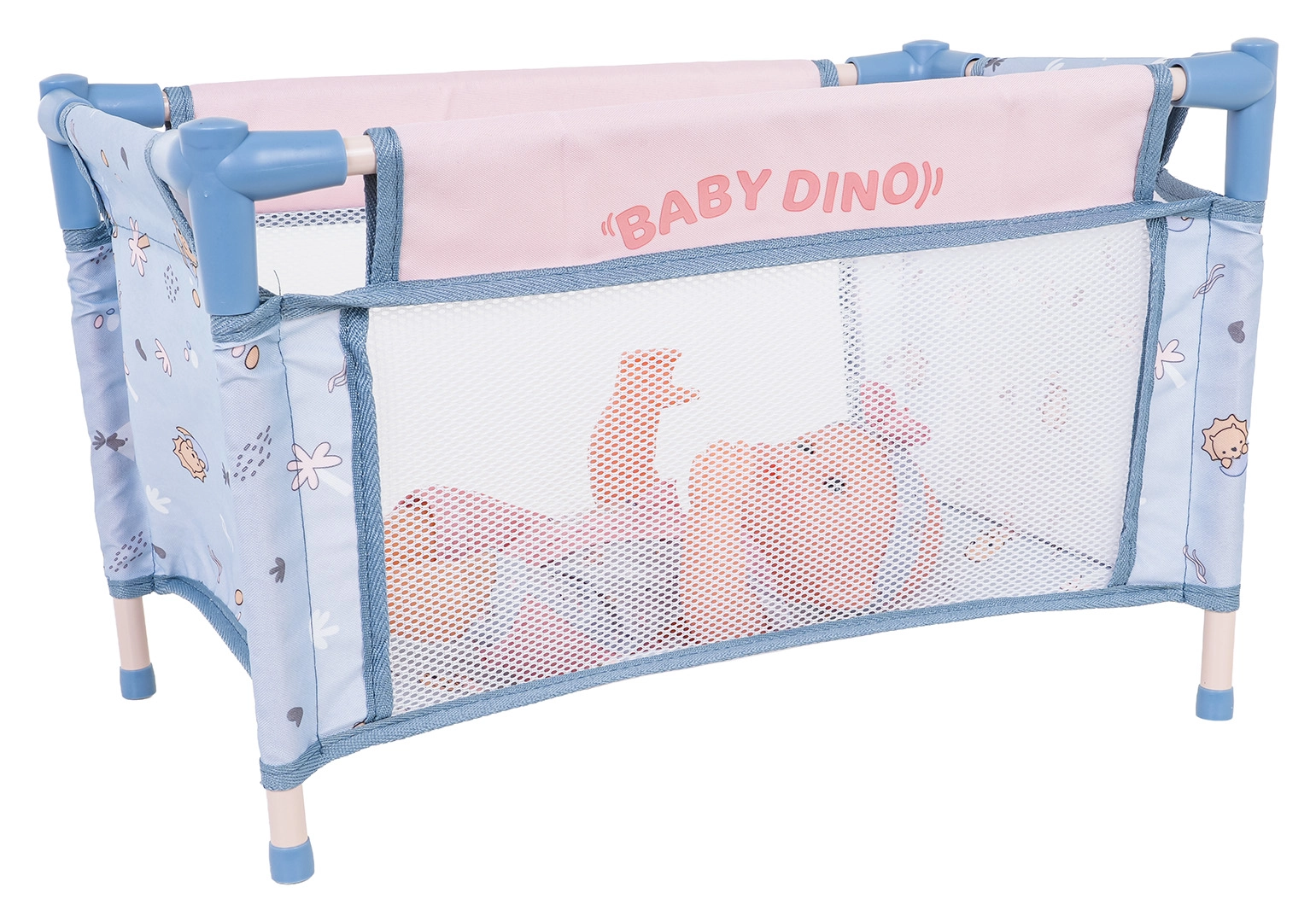 Praktická ohrádka/postýlka s pevnou konstrukcí a síťovinou pro lepší dohled a proudění vzduchu. Ladí s motivem BABY DINO.