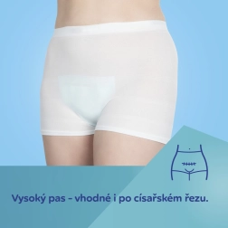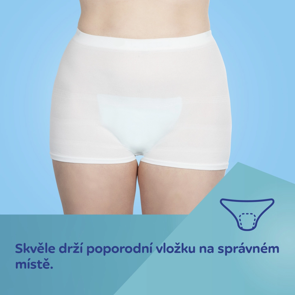 - Stabilní fixace vložky – jistota a hygiena v šestinedělí.