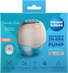 CANPOL babies Hands‑Free je bezdrátová elektrická odsávačka navržená pro aktivní maminky. Díky kompaktní konstrukci se vejde do podprsenky, pracuje tiše (max. 50 dB) a poskytuje svobodu pohybu doma, v práci i na cestách. Tři režimy napodobují přirozený rytmus sání dítěte a v každém z nich lze volit 8 úrovní intenzity až do 26 kPa pro maximální komfort.