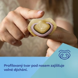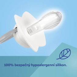 Symetrická špička se přirozeně přizpůsobí ústům bez ohledu na polohu, podporuje správný vývoj dutiny ústní a pohodlné sání.