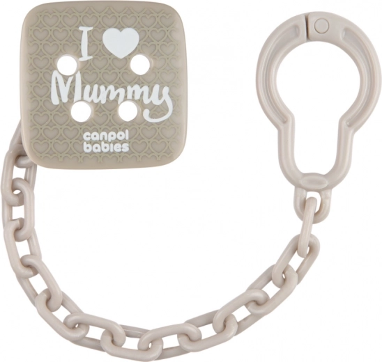Udržte dudlík vždy po ruce a v čistotě. Řetízek na dudlík Canpol babies I LOVE MUMMY nabízí spolehlivé uchycení pomocí pevného klipu, který se snadno ovládá jednou rukou. Minimalistický šedý design se hodí ke každému oblečení a díky zaobleným tvarům je šetrný a bezpečný.