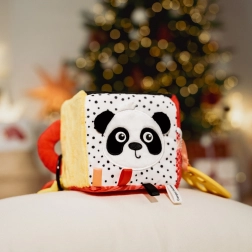 Měkká senzorická kostka Canpol babies BabiesBoo v kontrastních barvách podporuje rozvoj zraku, sluchu i hmatu od prvních dnů. Nabízí šustící prvky, jemné chrastítko, bezpečné zrcátko a flexibilní kousátko pro úlevu při prořezávání zoubků. Díky univerzálnímu kroužku ji snadno připevníte na kočárek, postýlku či autosedačku.