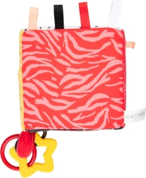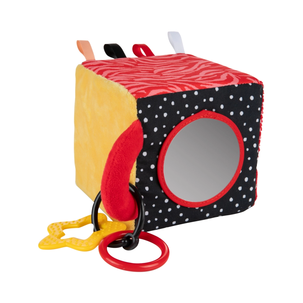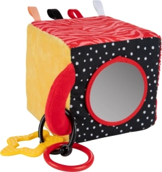 Praktický kroužek umožní kostku připevnit na kočárek, houpačku i autosedačku – skvělá na doma, na procházku i na cesty. Kousátko připevněné na stuze lze schovat do kapsičky, což zábavnou formou procvičuje jemnou motoriku a manuální dovednosti. Hračka je doporučená fyzioterapeutem a je vhodná pro děti od 0m+.