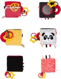 Šustící plochy, bezpečné zrcátko a jemné chrastítko rozvíjejí sluch, hmat i vizuální vnímání a motivují k objevování.
