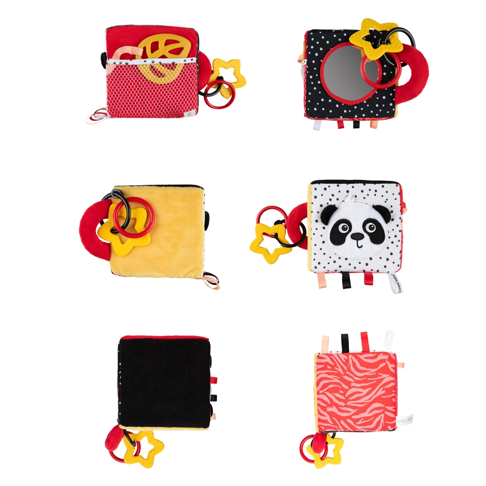 Senzorická kostka BabiesBoo je lehká, měkká a ideální do malých dětských ručiček. Kontrastní černobílé a barevné vzory stimulují zrak, šustící materiály a jemně zvonící chrastítko rozvíjejí sluch a pestré textury s poutky povzbuzují hmatové vnímání. Bezpečné zrcátko podporuje sebepoznání a koordinaci oko–ruka.