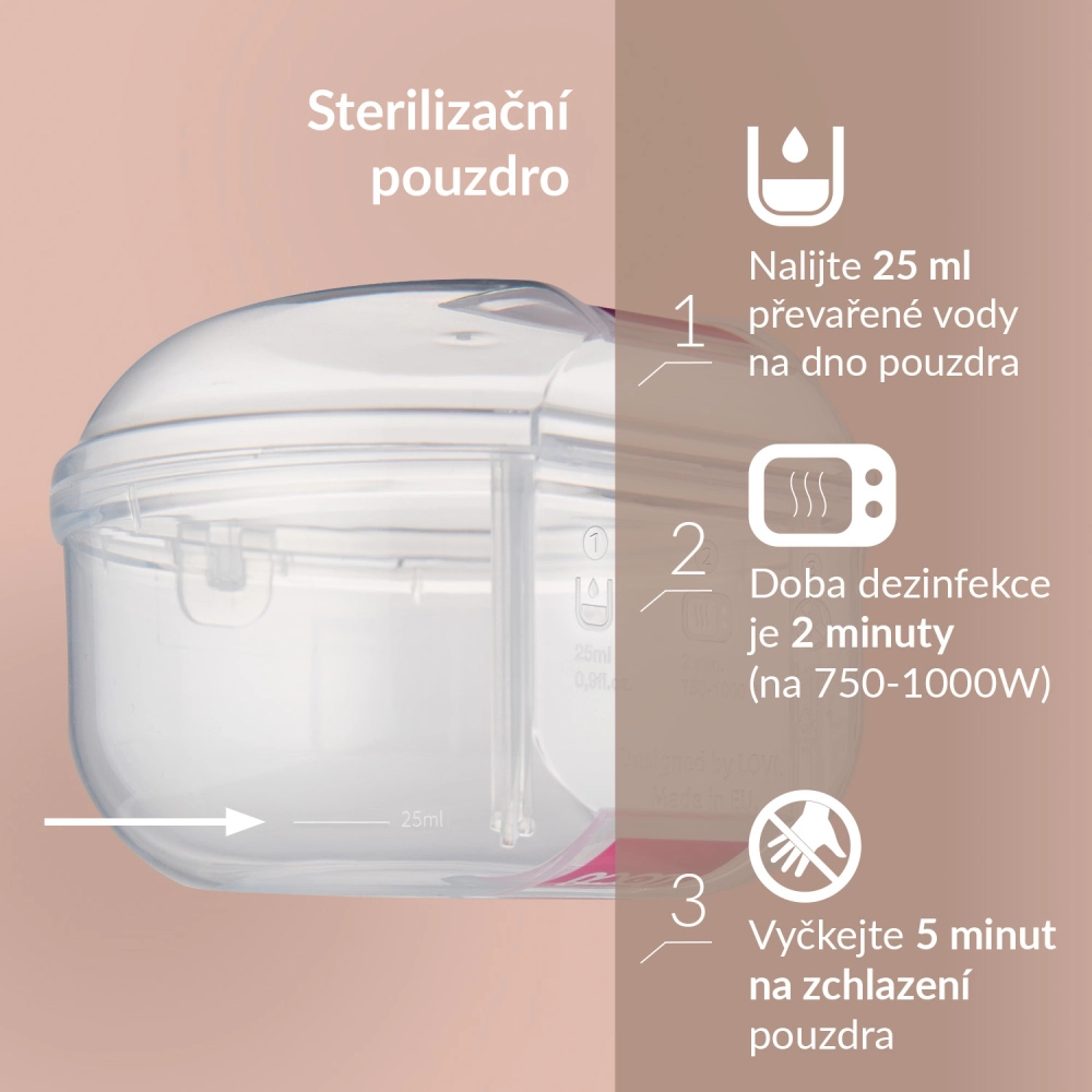 • Praktický set – 2 ks dudlíků + sterilizační pouzdro pro hygienické uložení a rychlou dezinfekci.