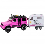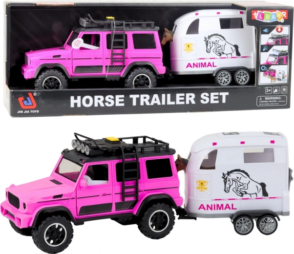 Objevte realistický herní set, který kombinuje robustní terénní vůz a přívěs na koně. Díky detailnímu zpracování, kvalitnímu plastu a atraktivní růžovo-bílé barevnosti působí hra autenticky a podporuje kreativitu i jemnou motoriku.