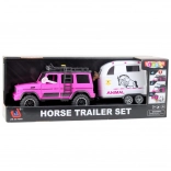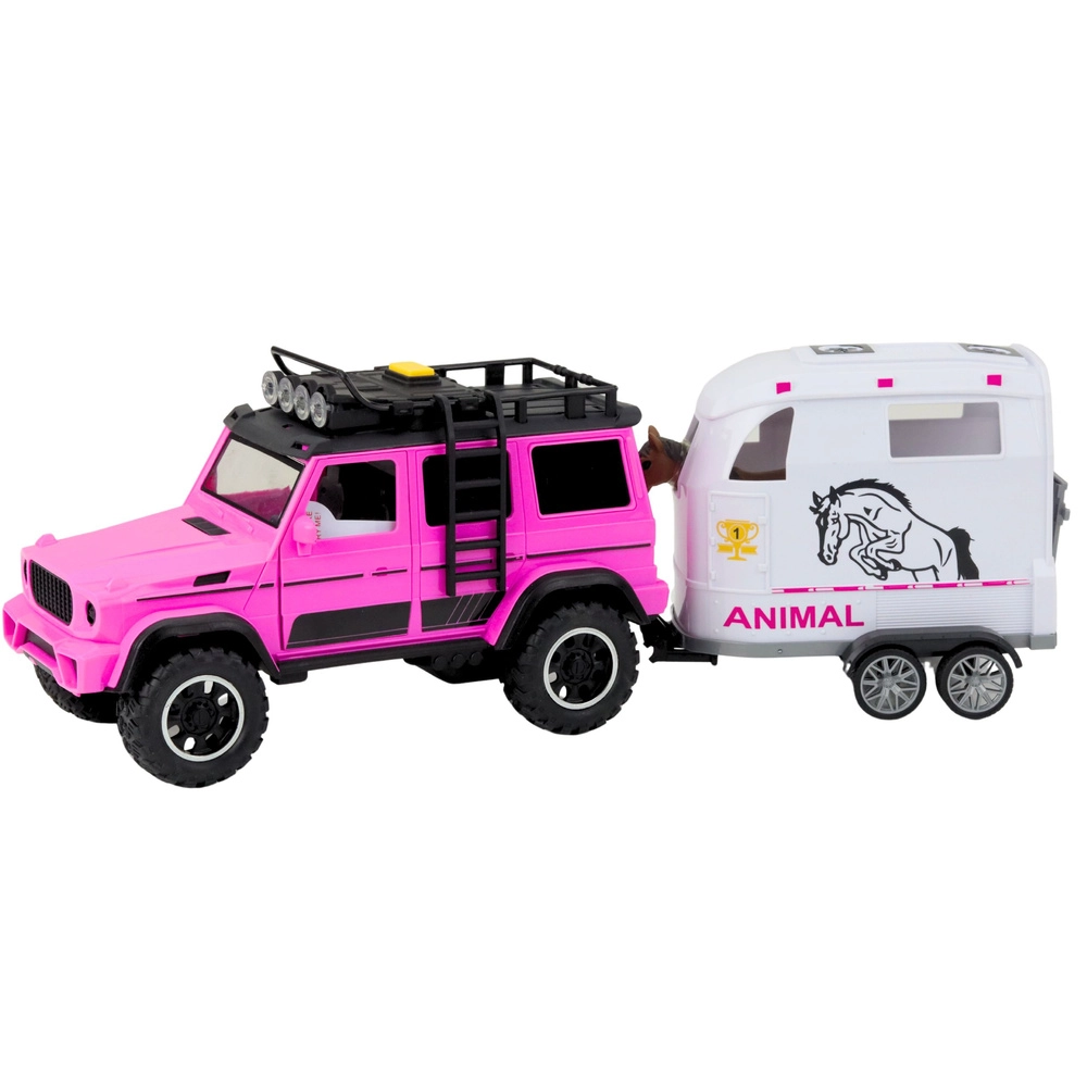 Auto je vybaveno světly a zvuky, které podpoří představivost, a otevíracími dveřmi pro snadné scénky z přepravy koně. Přívěs lze jednoduše odepnout, takže se děti mohou hrát s autem, přívěsem i koněm samostatně.