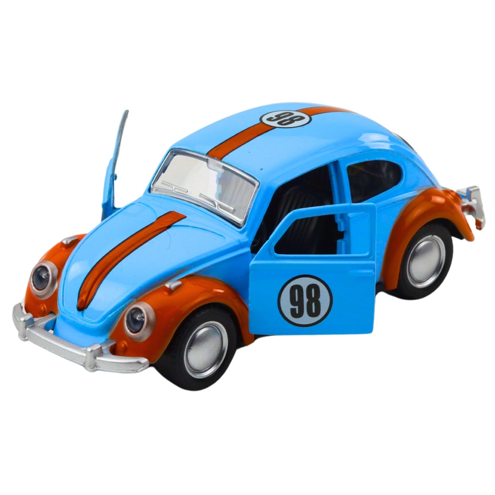 Oblíbený retro garbus v provedení z kovu s plastovými detaily spojuje odolnost a působivý vzhled. Stačí model natáhnout dozadu a po uvolnění se sám rozjede vpřed. Otevírací přední dveře zvyšují míru realismu a podporují kreativní scénky, ať už jde o závody nebo každodenní jízdu.
