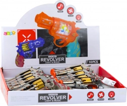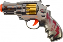 Zábavný dětský revolver pro malé hrdiny nabízí světelné a zvukové efekty, otočný zásobník a realistický vzhled. Je vyroben z odolného plastu, pohodlně padne do ruky a díky kompaktním rozměrům se snadno ovládá i mladšími dětmi.
