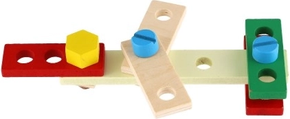 Tato vzdělávací hračka rozvíjí jemnou motoriku, koordinaci oko–ruka i logické a technické chápání. Díky dřevěnému provedení je set odolný, příjemný na dotek a vhodný pro každodenní hraní.